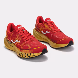 El diseño de la edición especial de Joma x ACEA Run Rome The Marathon se inspira en los símbolos más representativos del Imperio Romano. El color rojo, protagonista del upper de las dos zapatillas, hace referencia a los estandartes romanos, los mantos de los comandantes y al color del poder, la fuerza y la determinación.