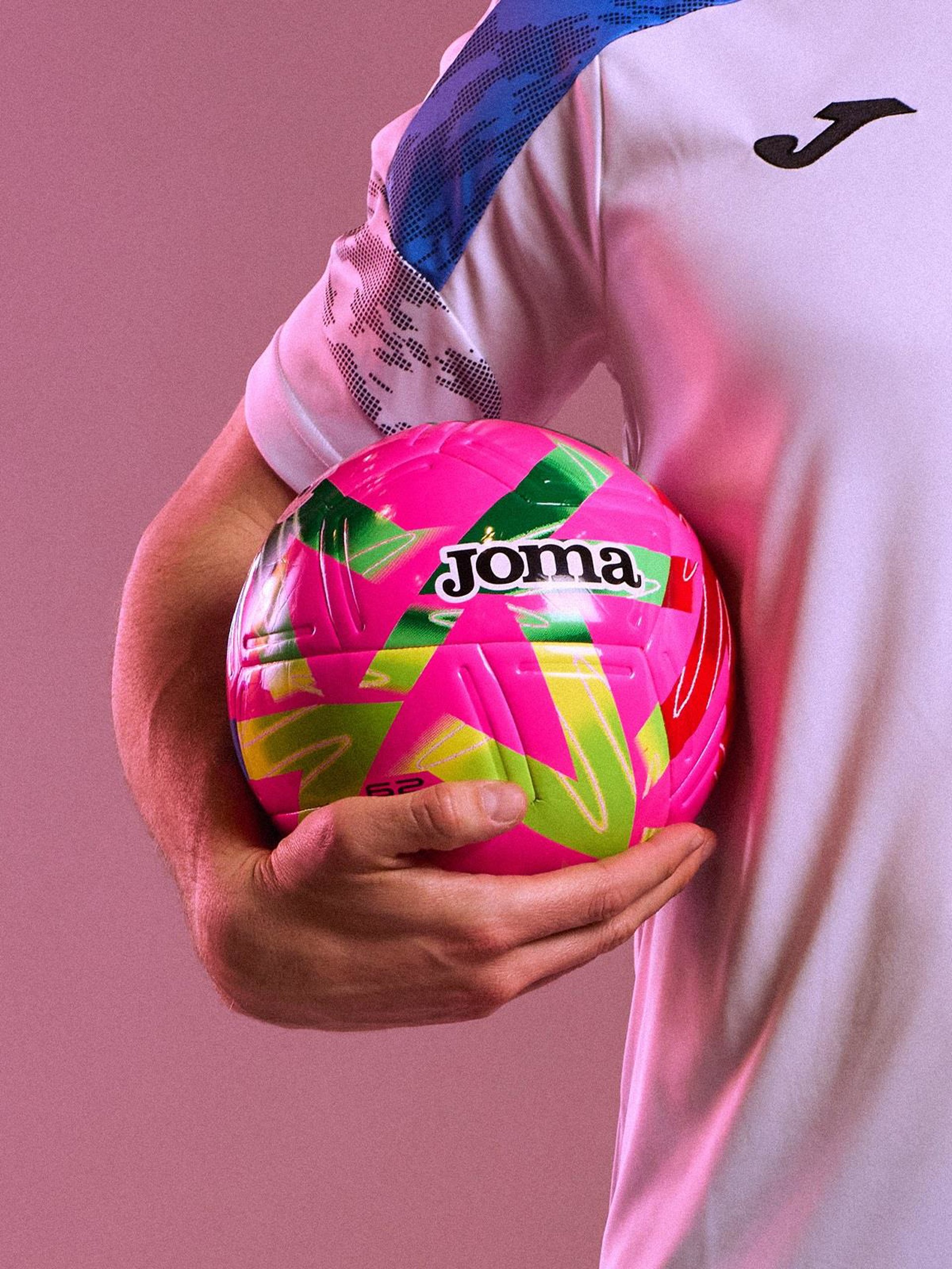 Según la marca deportivo, el nuevo balón "reinventa" el modelo 'Top 5' "mediante la aplicación de tecnología de vanguardia y de un llamativo diseño que combina el rosa como color principal, con los detalles en 'print' en diferentes colores y con efecto degradado añadiendo "potencia y propulsión". "De esta manera, el juego de colores volverá a dar una mayor sensación de impacto, tan característico de los modelos Top, y asegurará que destaque en las pistas interiores", remarcó 'Joma'.