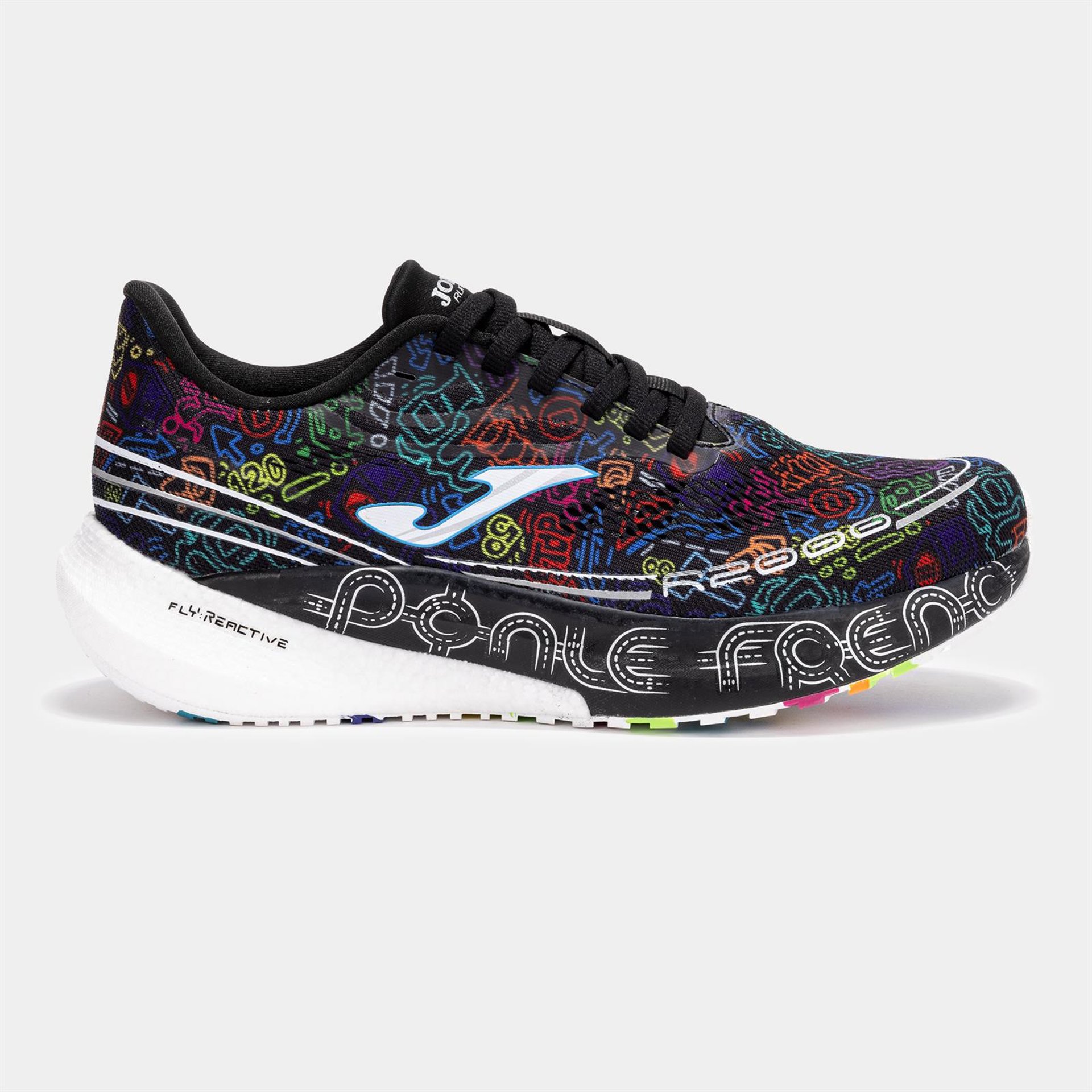Joma reedita uno de sus modelos más versátiles y cómodos con un diseño cargado de guiños a la seguridad vial. En esta ocasión, el upper es negro e incorpora prints con símbolos de tráfico en varios colores, todos con un acabado reflectante que aumenta la visibilidad del corredor y refuerza el mensaje de seguridad en carretera.