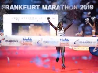 La atleta keniana Valary Jemeli Aiyabei se llevó este domingo la victoria en el maratón de Frankfurt con un nuevo récord femenino de la prueba, después de convertirse en la primera mujer en bajar de las 2 horas y 20 minutos al parar el crono en 2:19:10, mientras que el etíope Fikre Bekele Tefera venció en categoría masculina.