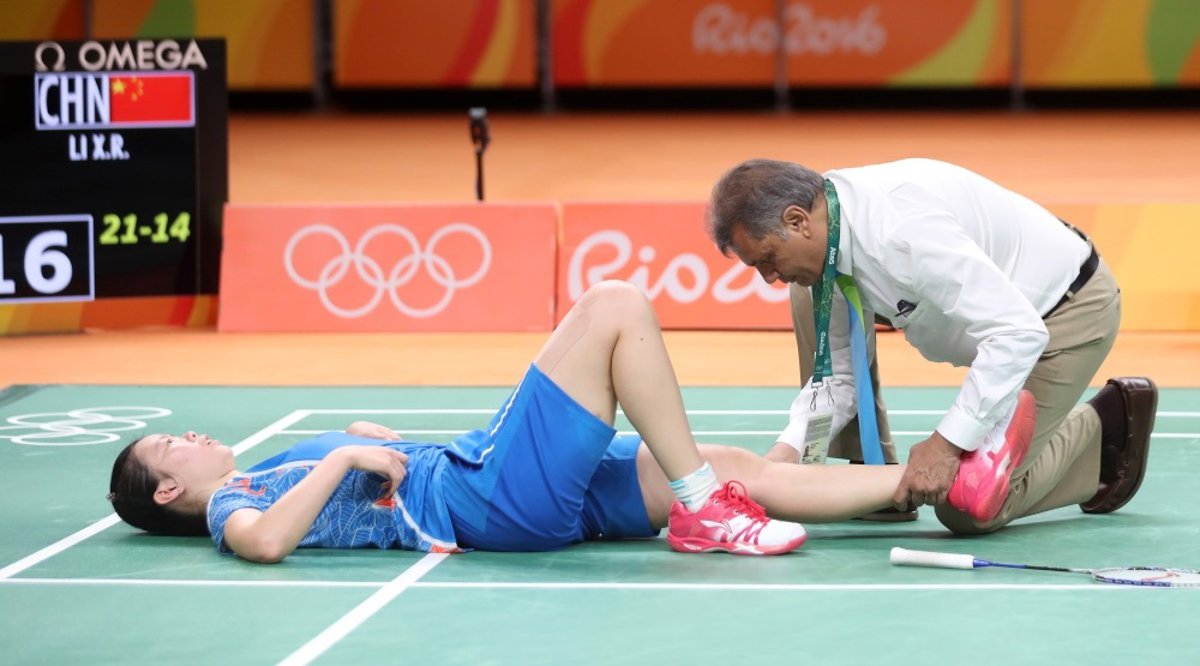 La jugadora de bádminton china Li Xuerui en el momento de lesionarse la rodilla en las semifinales de Rio 2016 ante Carolina Marín - BWF - Archivo