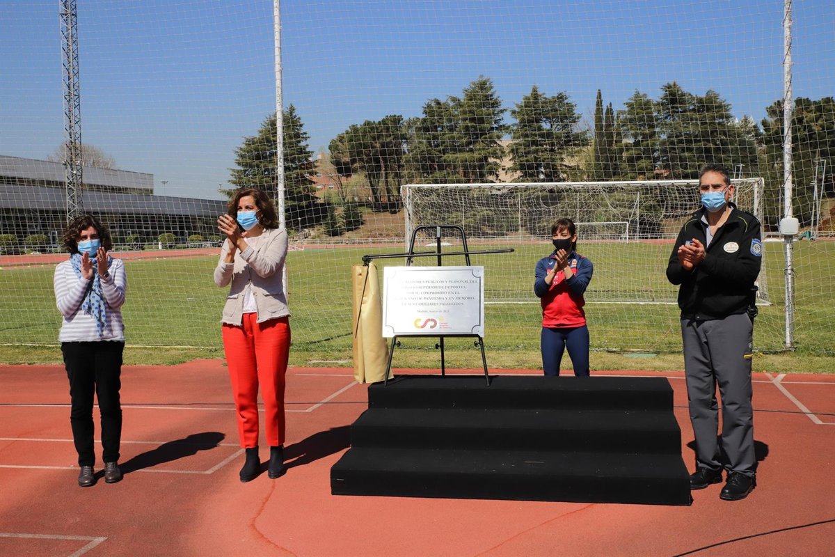 La presidenta del Consejo Superior de Deportes (CSD), Irene Lozano, ha descubierto este miércoles en el Centro de Alto Rendimiento (CAR) de Madrid una placa de homenaje a los trabajadores del organismo por su trabajo durante este año marcado por la crisis sanitaria y económica provocada por la pandemia de la COVID-19.