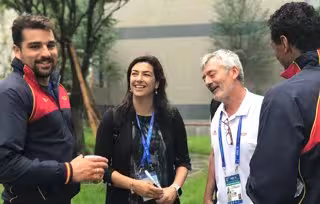 La dirigente granadina también ha charlado con parte del equipo de sincronizada, además de con varios seleccionadores y equipos técnicos. También ha podido conversar con el uruguayo Julio César Maglione, presidente de la Federación Internacional de Natación (FINA).