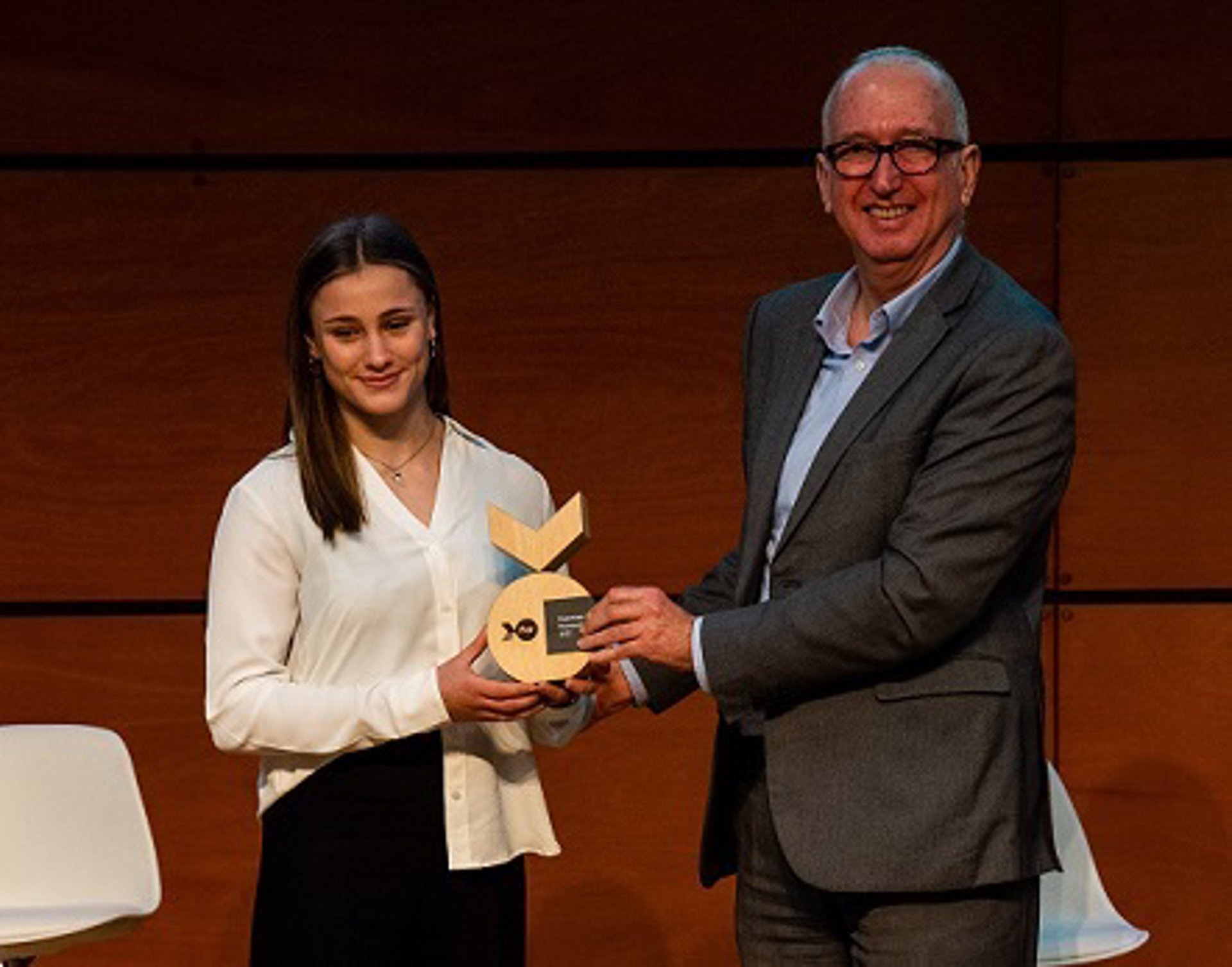 La judoca Marina Castelló recibió el premio como mejor deportista de manos de Juan Miguel Gómez, director de la Fundación Trinidad Alfonso, y con el lema 'Déjate la prenda' la Fundación Trinidad Alfonso