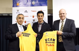 En el acto de presentación del patrocinio del vigente campeón de Europa de 20 kilómetros marcha en Zúrich (Suiza), el propio atleta ha estado acompañado del presidente del COE, Alejandro Blanco, junto con Pablo Rosique, representando a UCAM Murcia.