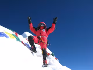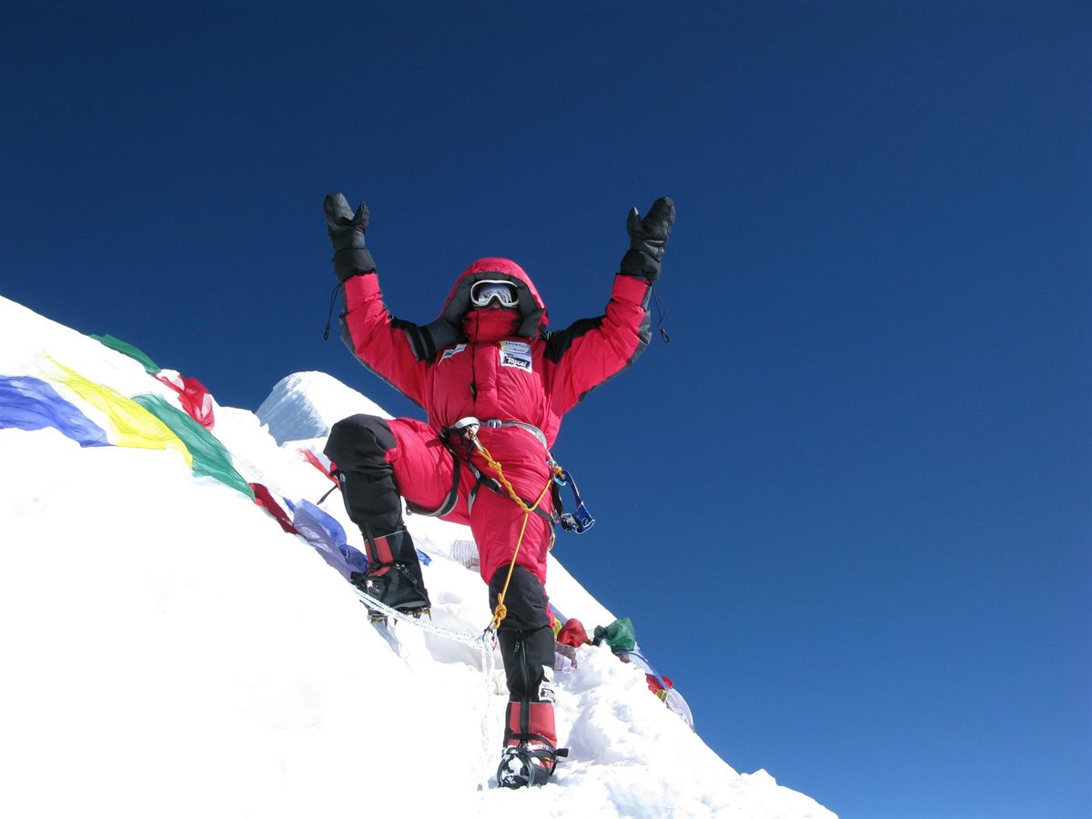 La ciclista y montañera de Cangas consiguió vencer una montaña que dos ocasiones se le había negado y lo hizo horas antes de que también lo consiguiera el vitoriano Juanito Oiarzabal.