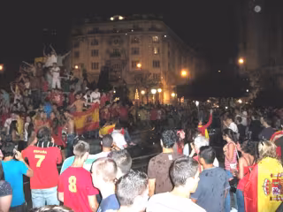 Miles de personas se han concentrado esta noche en la Plaza Moyúa de Bilbao para celebrar el triunfo de la selección española de fútbol, 'La Roja', en el mundial que se ha celebrado en Sudáfrica.