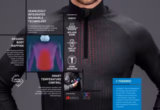 Disponible como capa intermedia, analiza y regula el calor corporal mediante sensores térmicos inteligentes integrados sin costuras en las prendas. Siguiendo el concepto del mapeo corporal orgánico, los elementos calefactables están ubicados en la zona abdominal y lumbar de forma que estas partes más sensibles retienen su propio calor, especialmente en deportes con momentos de parada como el esquí.
