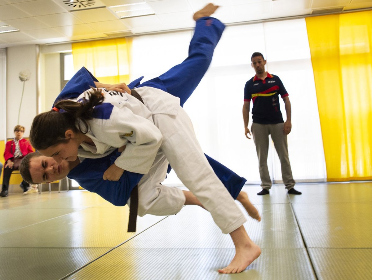 Dos alumnas con discapacidad visual practican judo en una escuela deportiva - ONCE