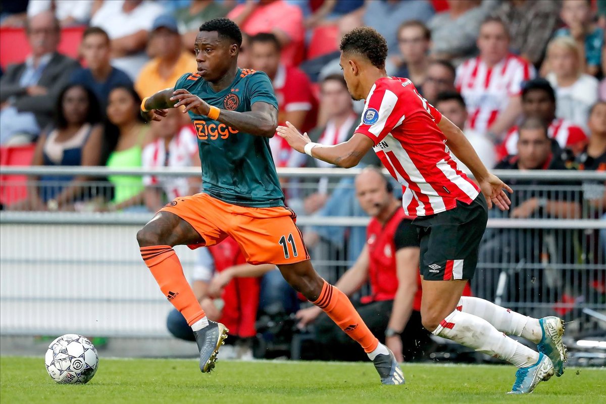 Quincy Promes conduce la pelota durante el partido entre el PSV y el Ajax de la Eredivisie 2019-2020 - Stanley Gontha/PRO SHOTS/AFP/AFP7/Europapress