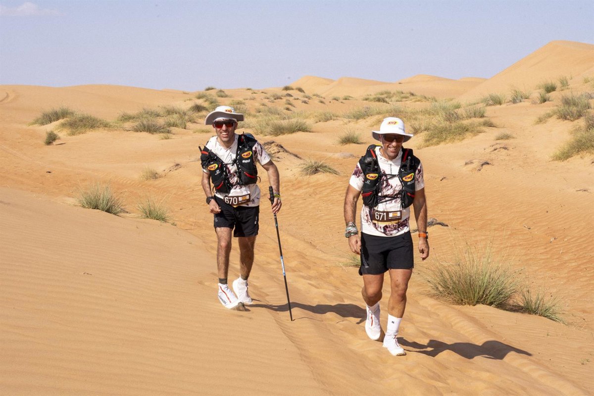 El esquiador paralímpico Pol Makuri y el corredor de montaña y periodista Albert Jorquera cumplieron el sueño compartido de finalizar la Oman Desert Marathon y hacerlo, además, en tercera posición por parejas con un tiempo de 35:10 horas para culminar los 168 kilómetros de carrear por el desierto.