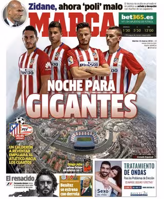 FÚTBOL “Noche de gigantes. Un Calderón a reventar empujará al Atlético hacia cuartos”; Real Madrid “Zidane: Ahora 'poli' malo. El técnico ahora no oculta en privado ni en público su enfado y decepción con algunos jugadores”
