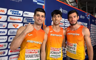 Los atletas españoles Quique Llopis, Asier Martínez y Abel Jordán se han metido en la final de los 60 metros vallas del Campeonato de Europa de atletismo bajo techo, que se está disputando en Apeldoorn (Países Bajos), en una segunda jornada en la que Fátima Diame también se ha asegurado el pase a la final de longitud.