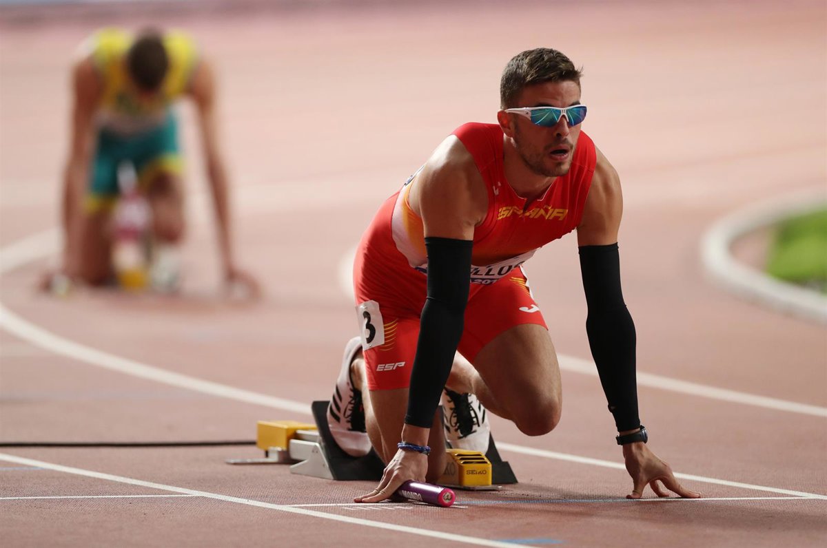 El atleta español Óscar Husillos antes de comenzar el relevo en el Mundial de Catar 2019 - REUTERS / ALEKSANDRA SZMIGIEL