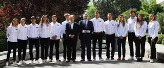 Rodriguez Uribes junto al presidente de la RFEV, Javier Sanz, y el equipo olímpico de vela para París 2025 - PRENSA CSD