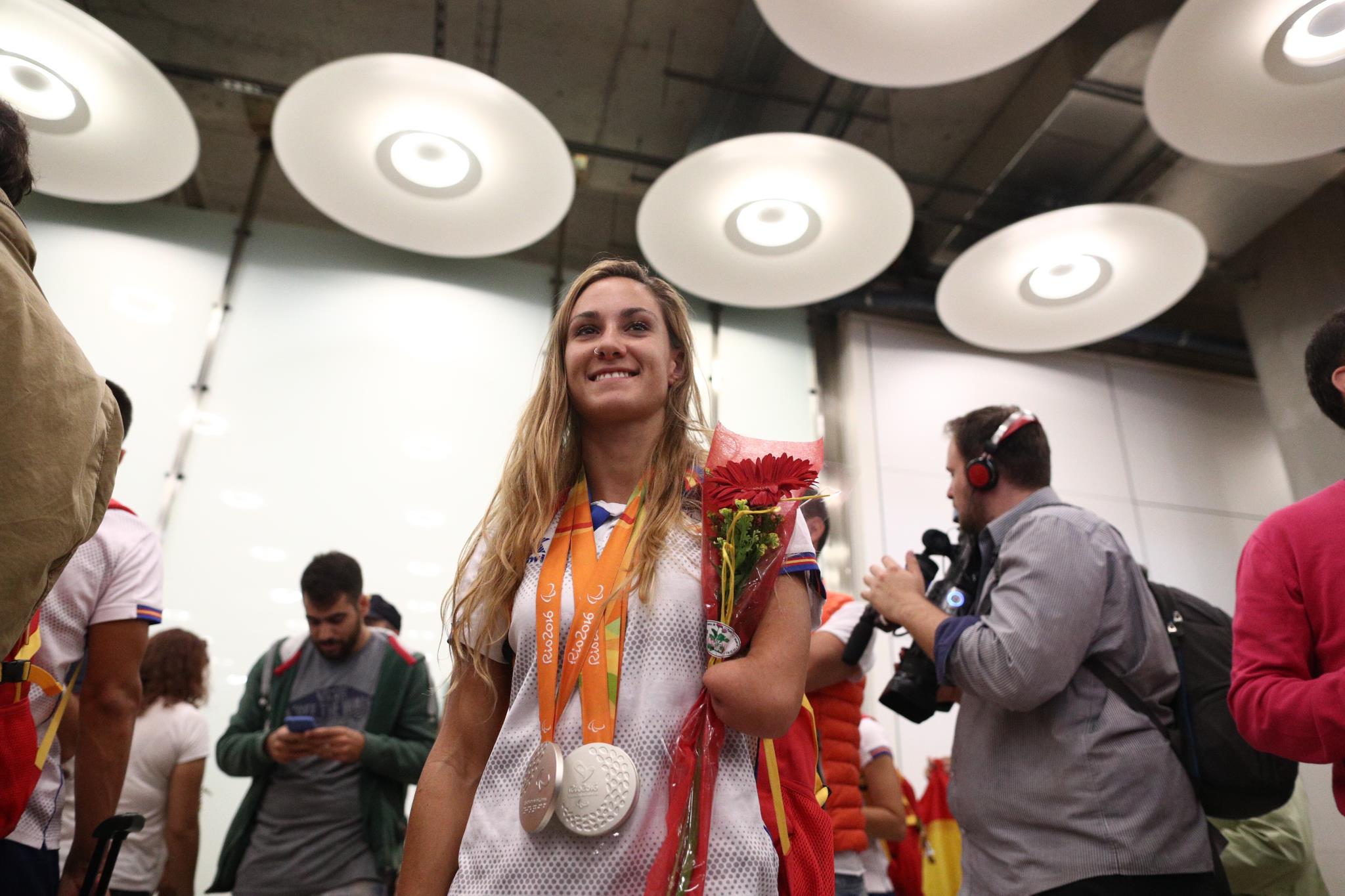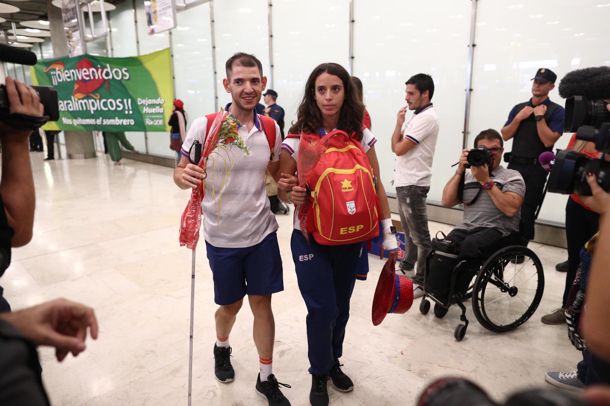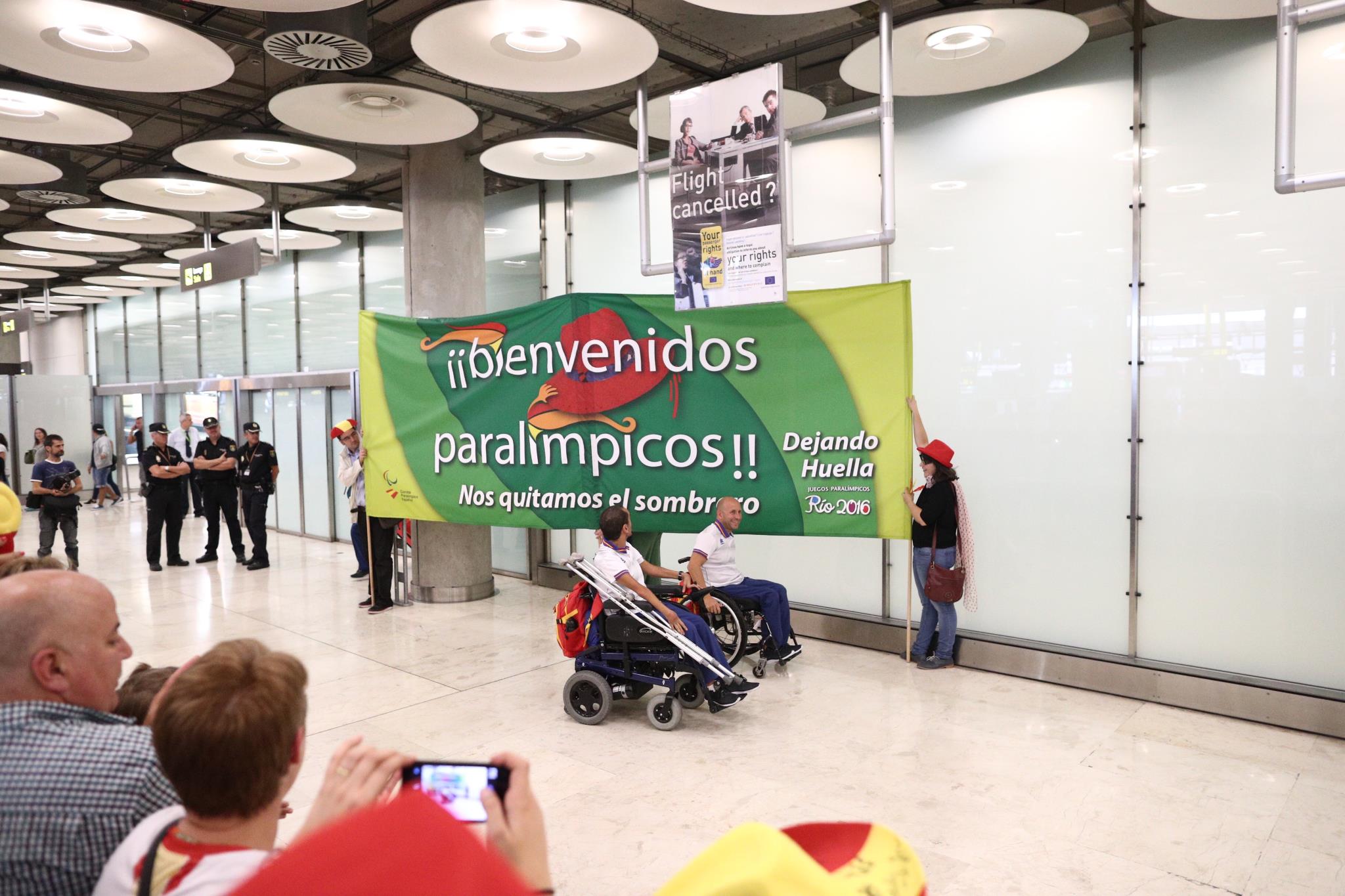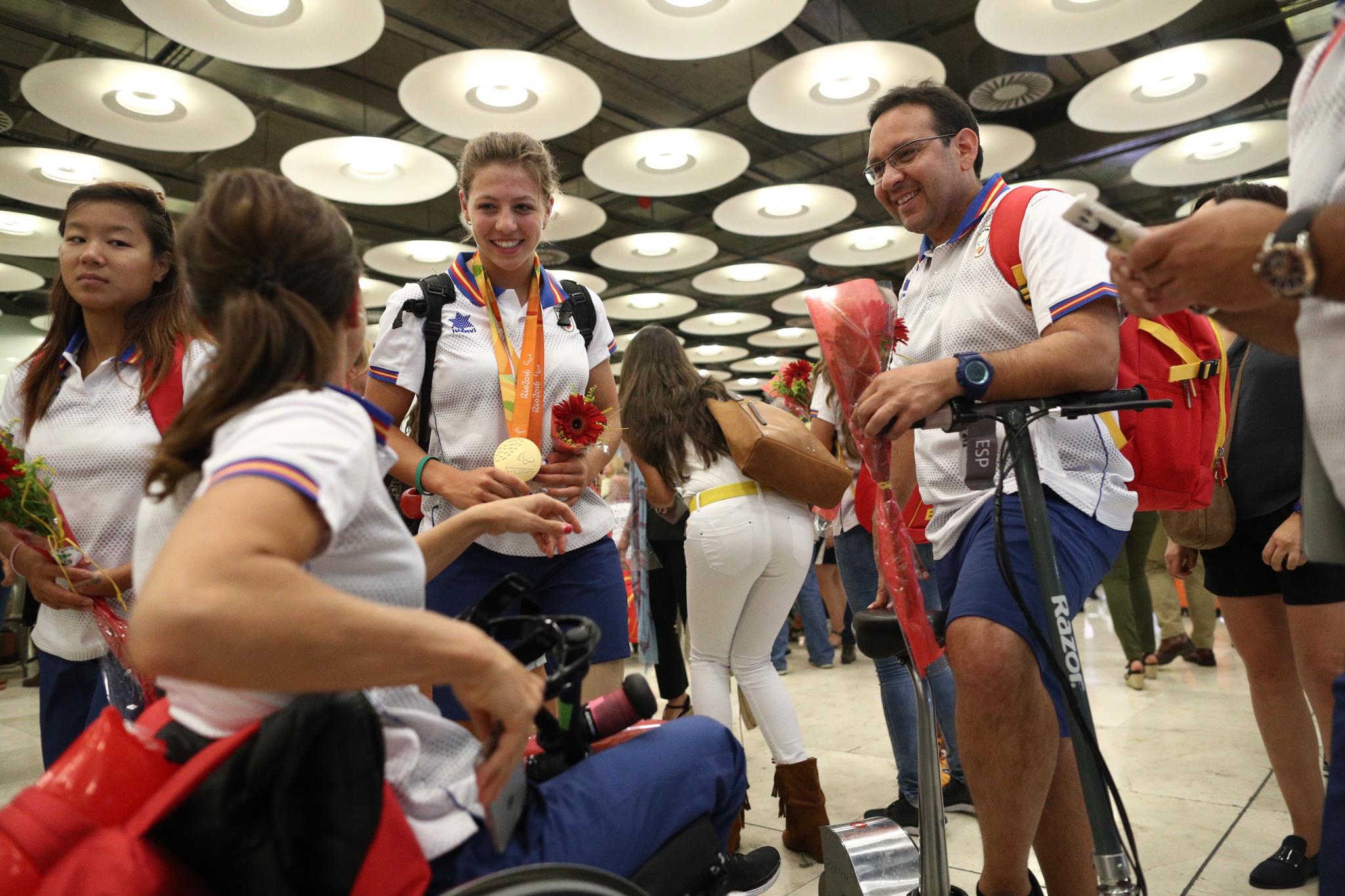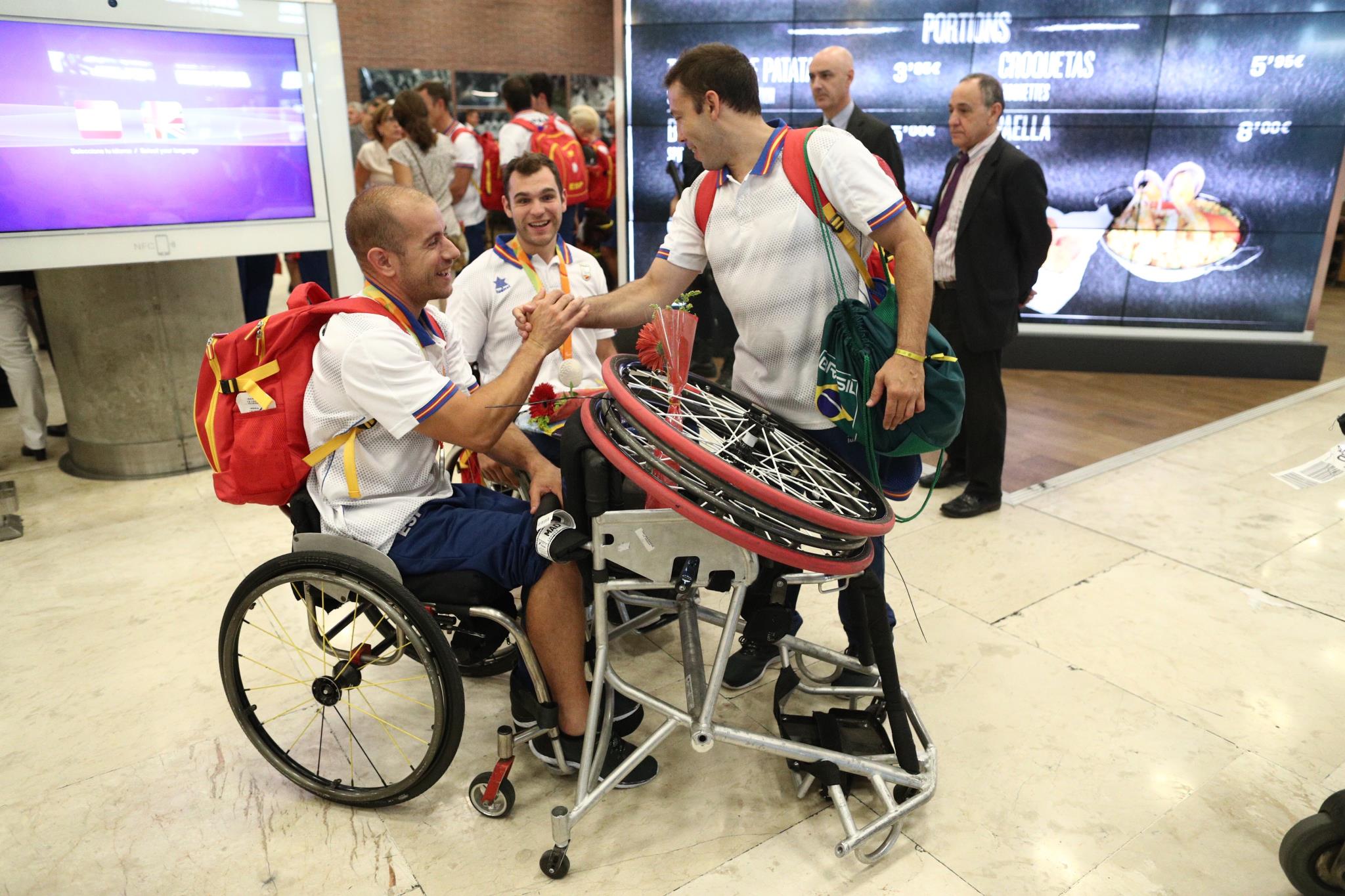 La mayoría del equipo paralímpico español en los Juegos de Río de Janeiro 2016 ha aterrizado este miércoles en España donde han sido recibidos por multitud de aficionados a su llegada a la T4 de Madrid - Barajas.