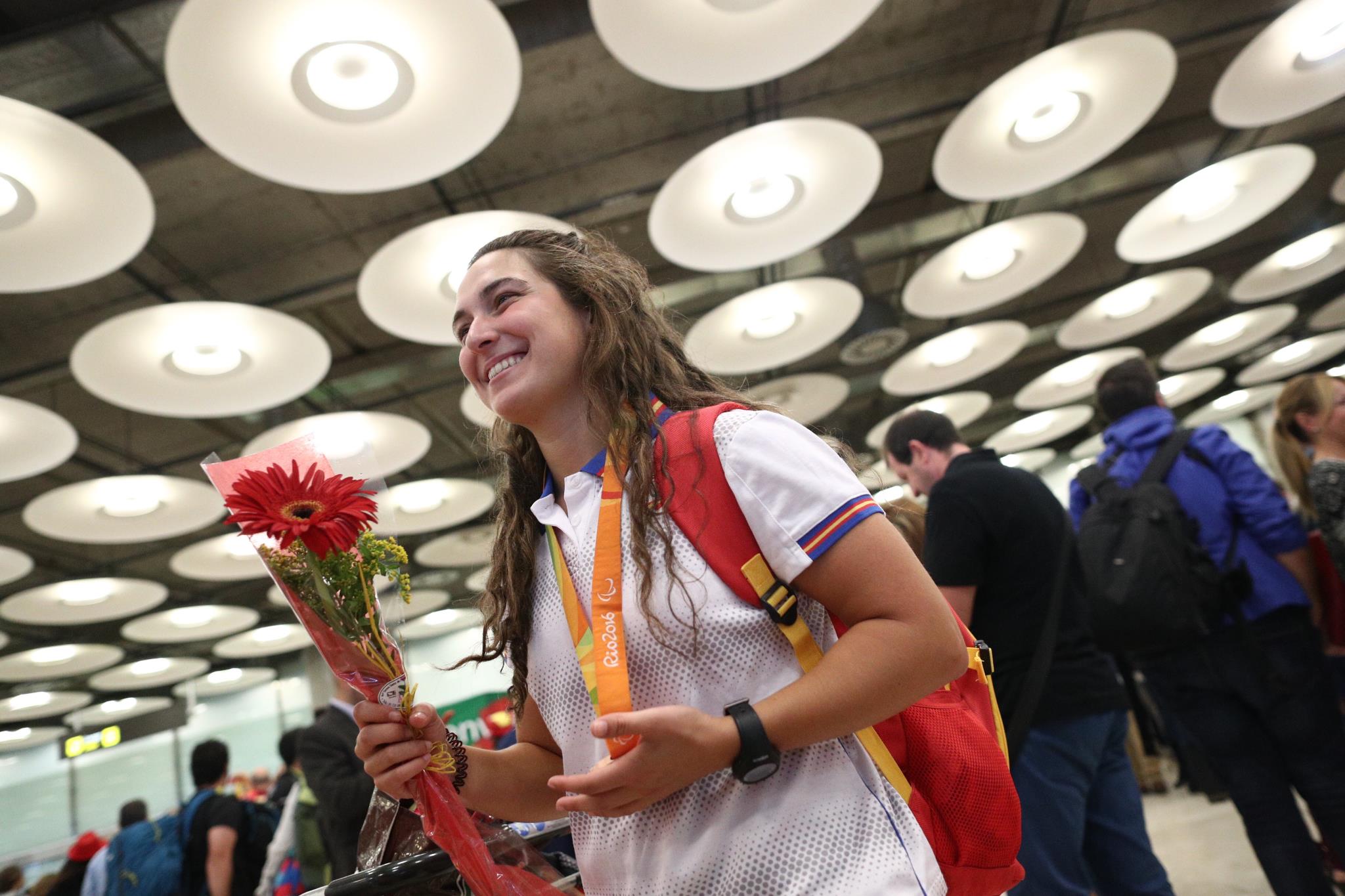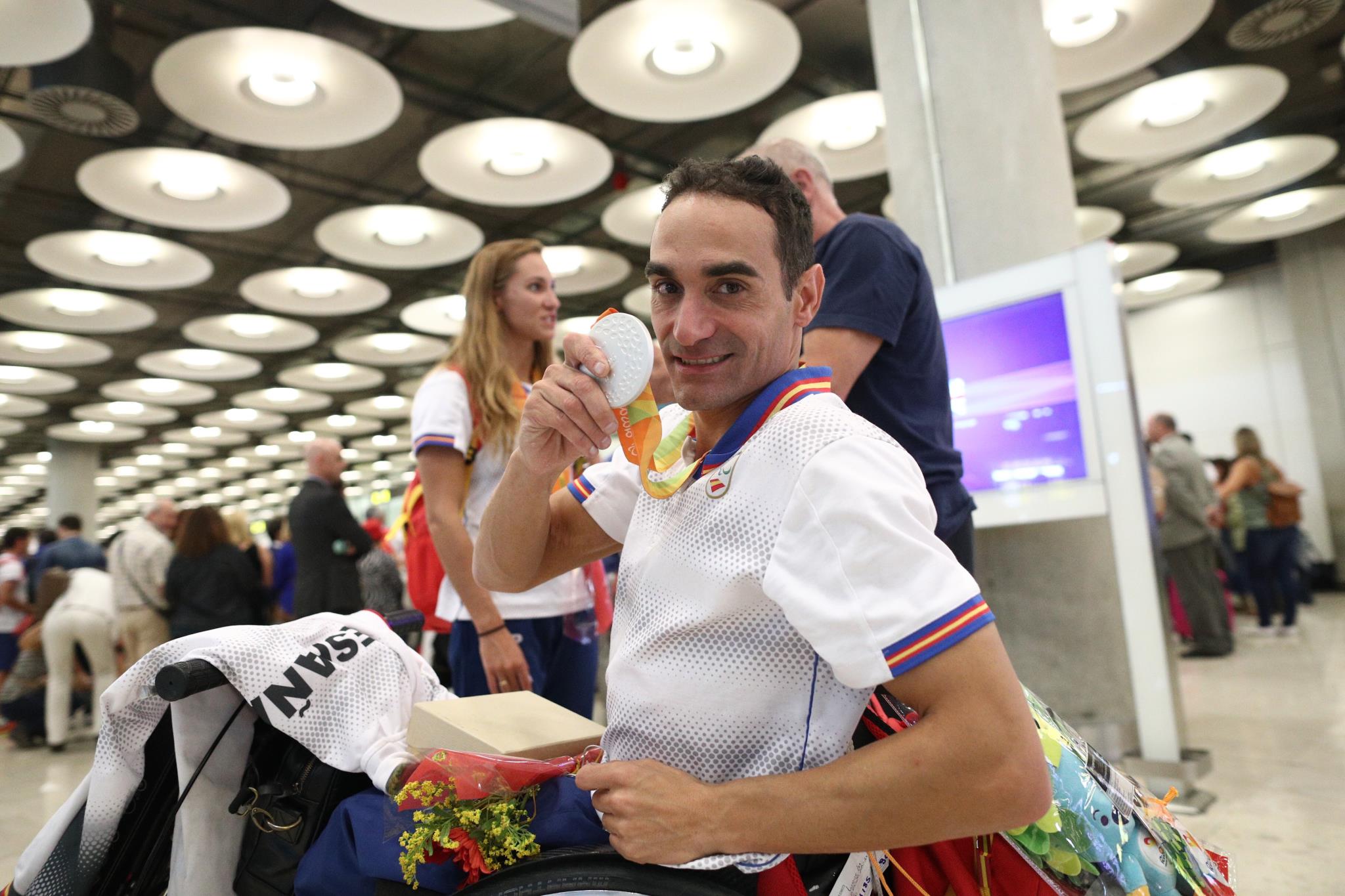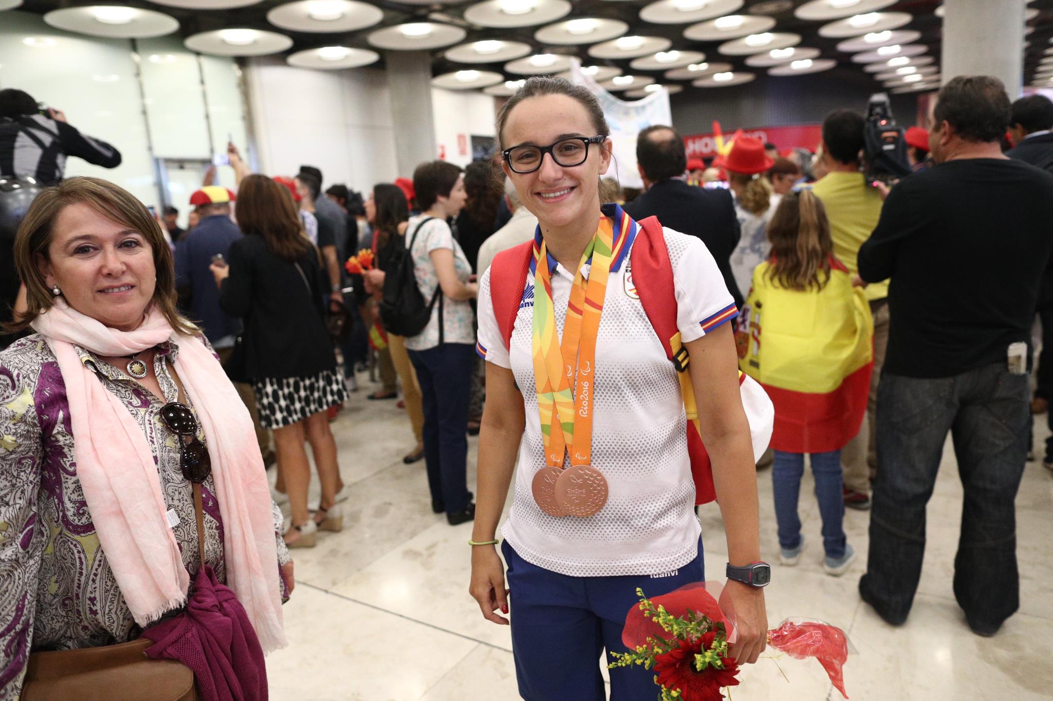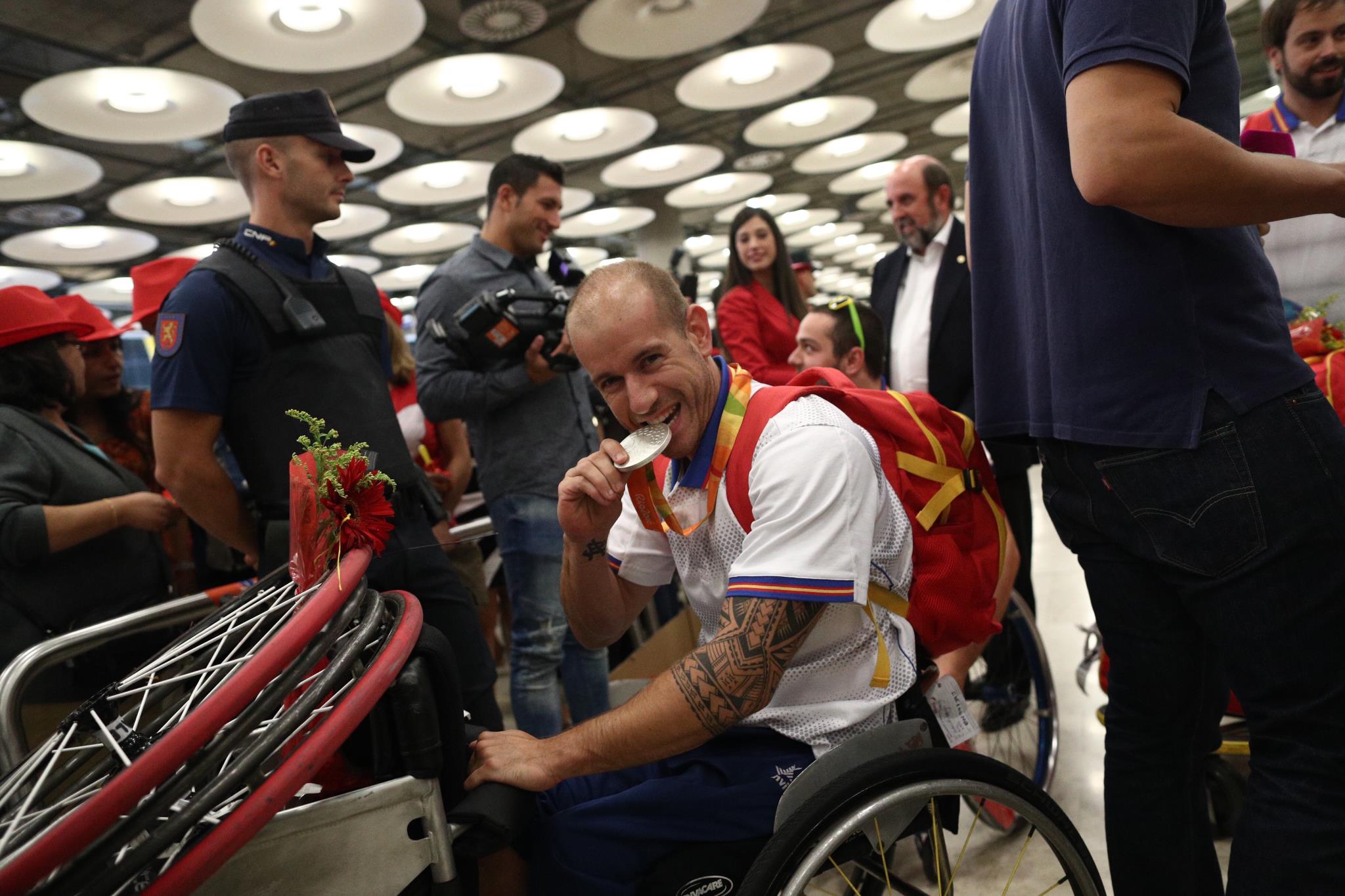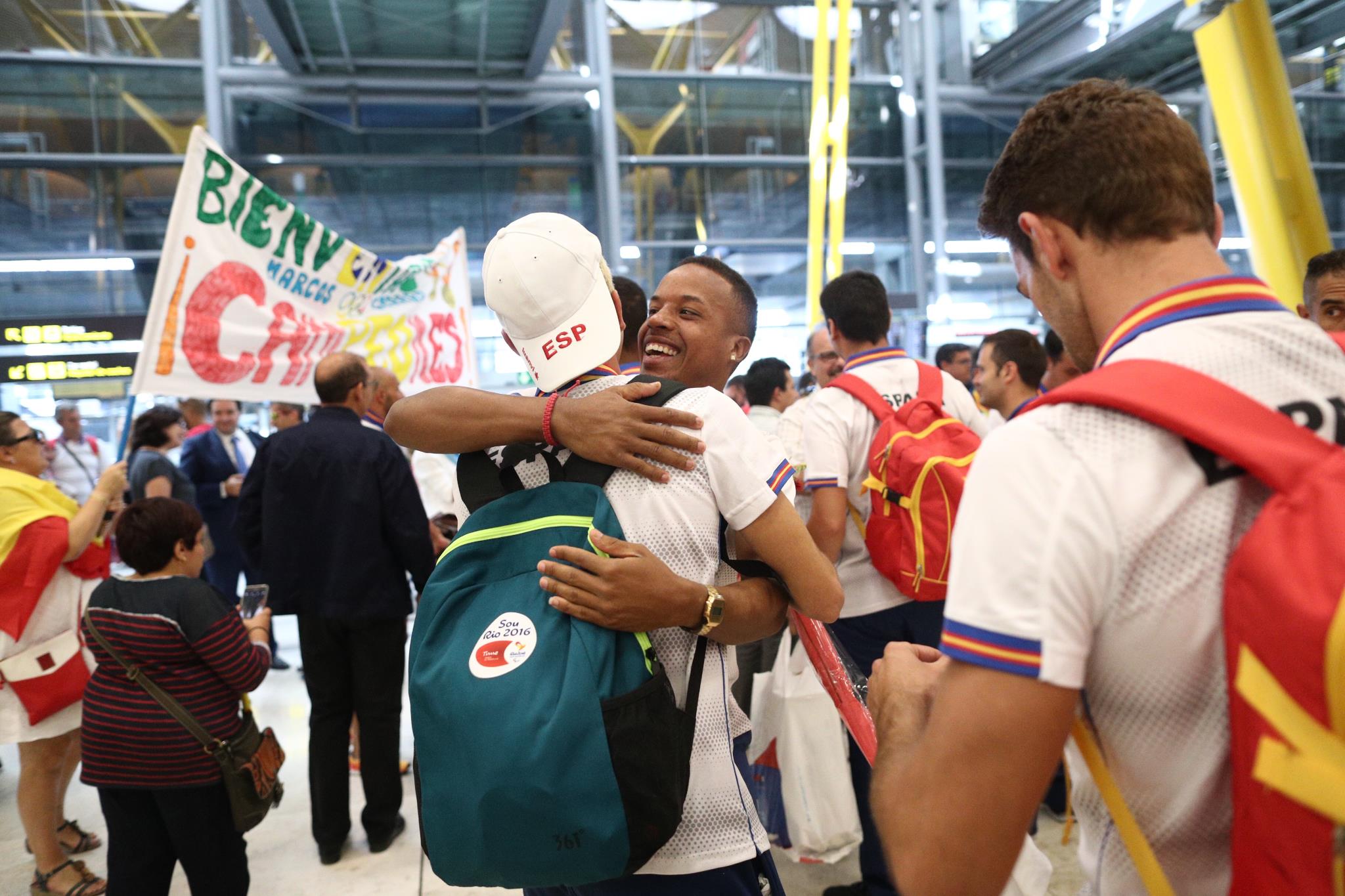 La mayoría del equipo paralímpico español en los Juegos de Río de Janeiro 2016 ha aterrizado este miércoles en España donde han sido recibidos por multitud de aficionados a su llegada a la T4 de Madrid - Barajas.