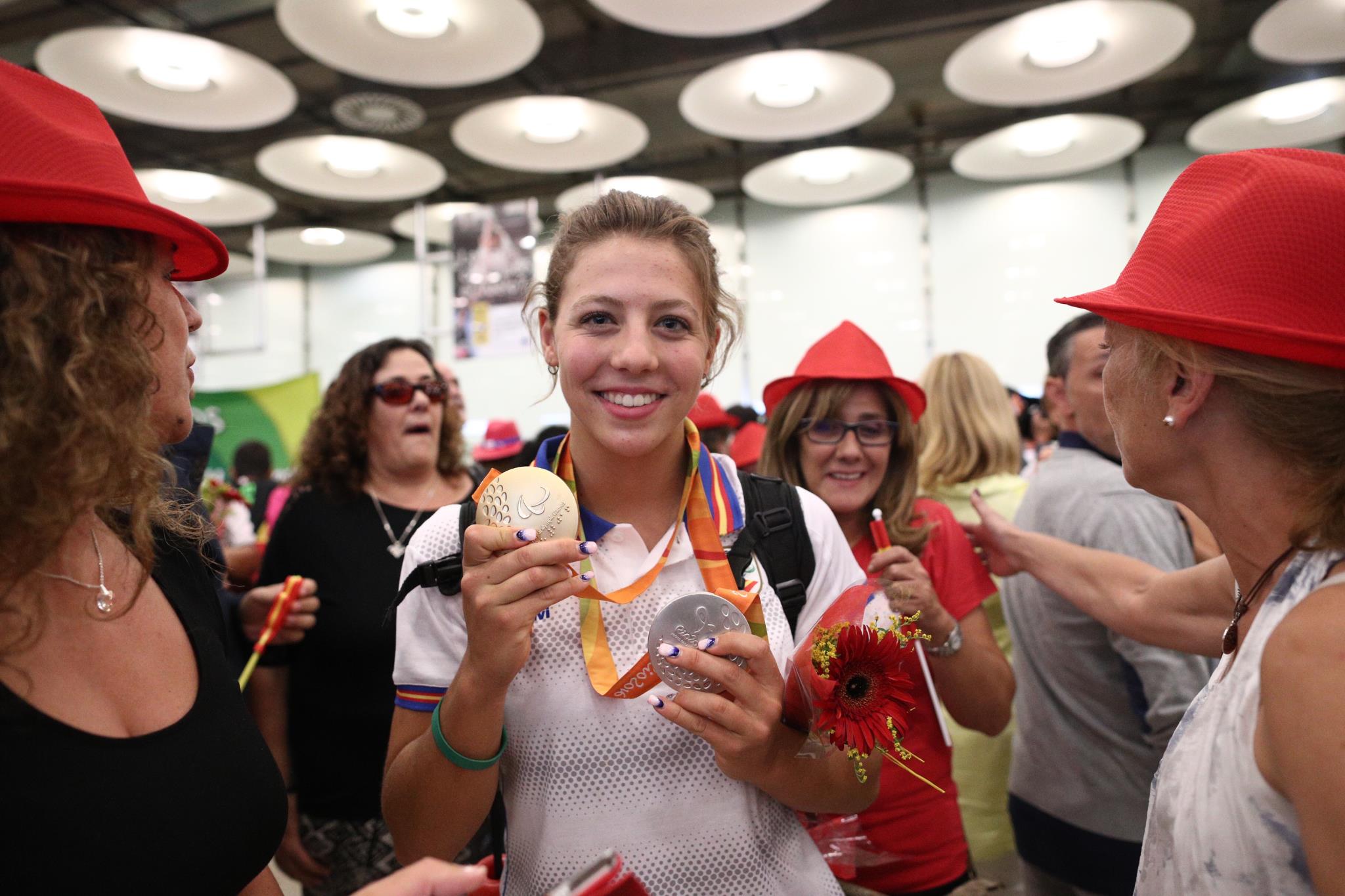 Tras casi dos horas de retraso en su vuelo, los deportistas han hecho acto de presencia hacia las 11 de la mañana. La nadadora Teresa Perales, líder indiscutible de la delegación española y ganadora de 4 metales (un oro y tres platas), posaba orgullosa con sus trofeos ante las felicitaciones de los allí congregados. Sarai Gascón, Nuria Márquez, María Delgado, Jairo Ruiz, Alfonso Cabello, Eduardo Santas, Amador Granados y Álvaro Vela han sido otros que no han dudado en 'presumir' de medallas.