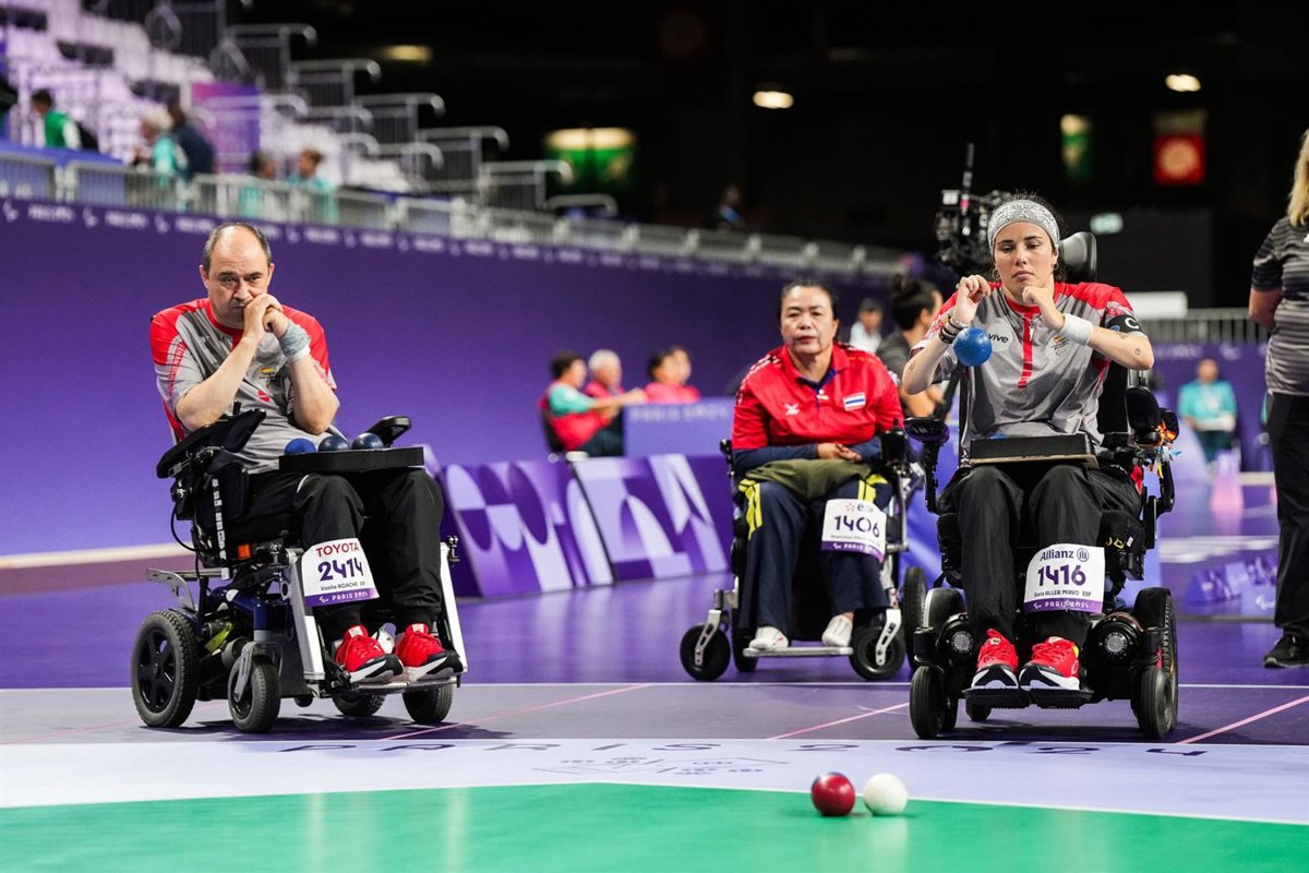 Archivo - Vasile Agache y Sara Aller durante la competición mixta por parejas de la clase BC4 de la boccia de los Juegos Paralímpicos de París de 2024 - GORKA LEIZA/CPE - Archivo