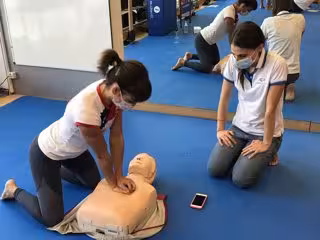 La karateca Sandra Sánchez haciendo una práctica de reanimación cardiaca - RFEK