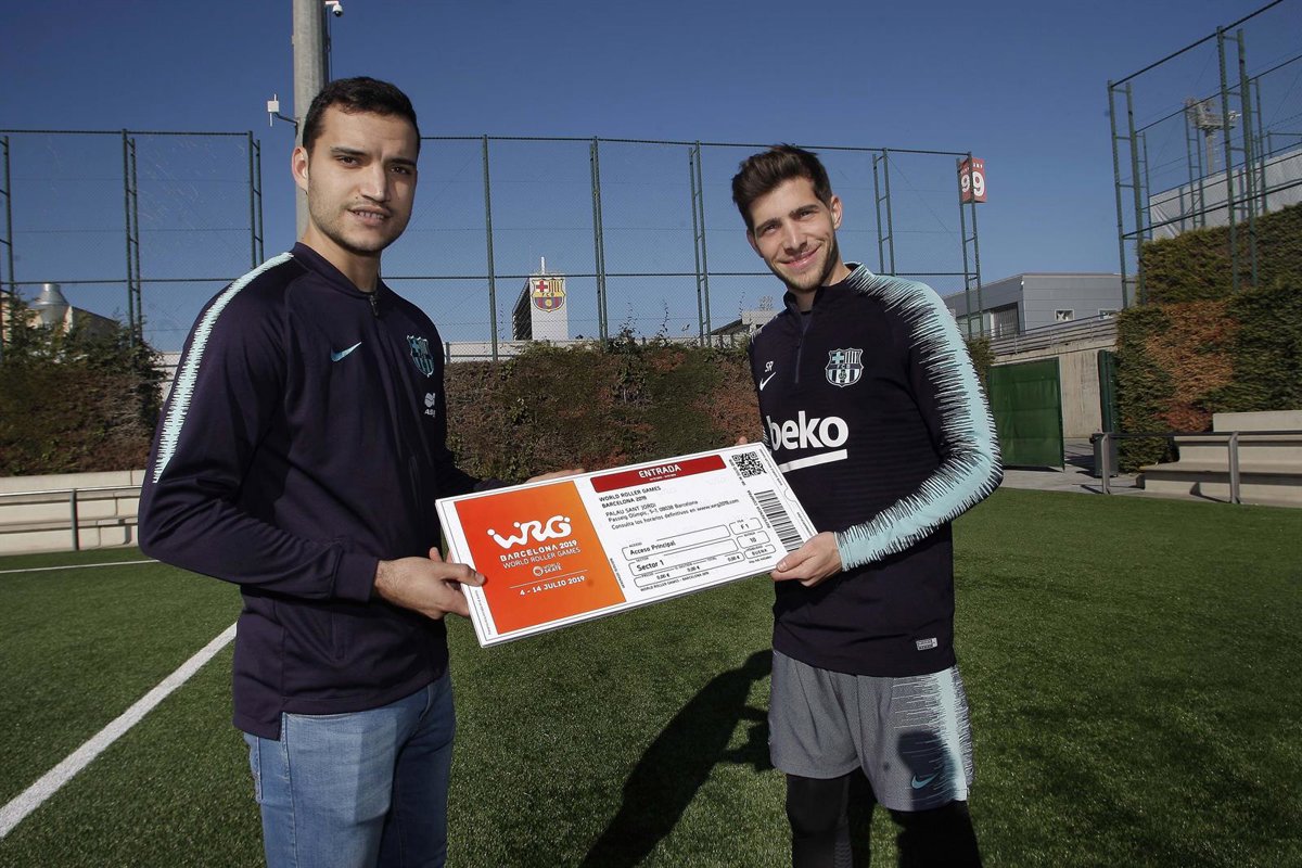 El futbolista del FC Barcelona Sergi Roberto ha recibido de manos del jugador blaugrana y capitán de la selección española de hockey patines Pau Bargalló, de forma simbólica, la primera entrada para los World Roller Games 2019 que se disputarán en Barcelona del 4 al 14 de julio.