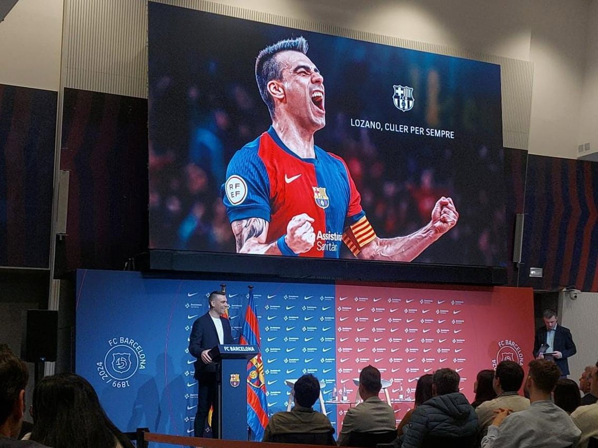 "Vengo a comunicar algo que ha sido muy difícil para mí. Mi corazón y cabeza decían una cosa, pero he entendido que la dirección deportiva tiene otros planes para mí. Cuando acabe la temporada, será mi última como jugador del FC Barcelona y obviamente no voy a jugar con otra camiseta. Si algo tenía claro es que la blaugrana iba a ser mi última camiseta y esto lo quería cumplir", aseguró Lozano en un acto que tuvo lugar en el Auditori 1899 del Spotify Camp Nou, acompañado por el presidente blaugrana, Joan Laporta, compañeros, 'staff' y amigos y familiares.