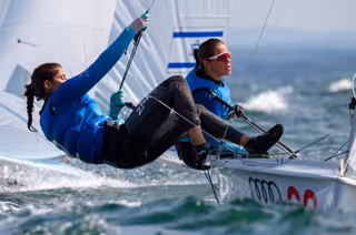 El barco femenino es el que tiene más opciones de conseguir medalla después de que la catalana y la canaria sumasen un tercero y un noveno para quedarse quintas con 76 puntos, a nueve de la plata y a ocho del bronce. Sus compañeras Bàrbara Cornudella y Sara López finalizaron decimoterceras.