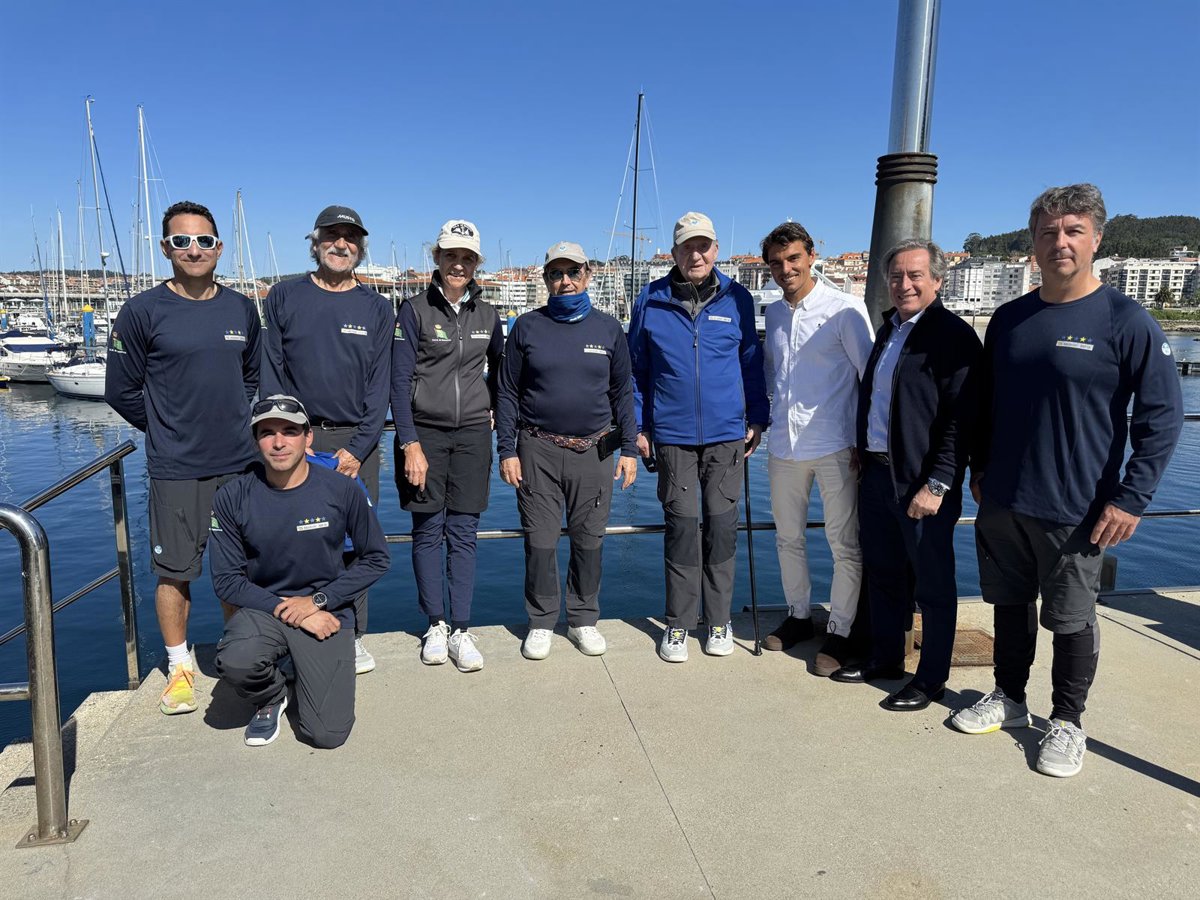 Momentos antes de soltar amarras, los dos deportistas se reunieron con el rey emérito en los pantalanes y estuvieron charlando con él y con otros participantes en la regata que acoge este fin de semana la ría de Pontevedra.