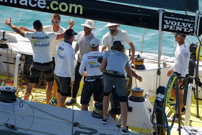 Le ha seguido 'Dongfeng Race Team' 16 minutos más tarde, el barco con el que ha peleado a muerte desde hace dos semanas, y del que no ha llegado a separarse más de quince millas durante los últimos siete días. Con esta victoria, 'Team Brunel' se pone primero, mientras que 'Dongfeng Race Team' sería tercero si 'Abu Dhabi Ocean Racing', como todo apunta, acaba tercero.