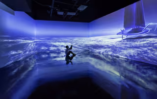Además, la experiencia cuenta también con dos simuladores diseñados específicamente para el America's Cup Experience que recrearán las sensaciones que sólo pueden vivir los tripulantes. Para lograrlo, se han fabricado dos simuladores inmersivos, un software ad-hoc con un sistema robotizado de movimiento, junto con un entorno de gafas de realidad virtual y sistema de aire.