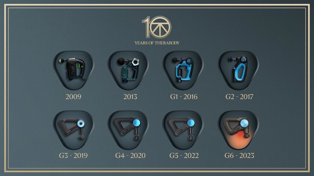En 2016 se fundó la empresa, que con los años ha dado paso a la actual Therabody. Actualmente, la compañía representa mucho más que la terapia muscular, ya que desarrolla soluciones que combinan rendimiento, bienestar y belleza con el objetivo de ayudar a las personas a vivir más y mejor.