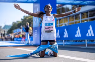 Sigueron alejándose de sus perseguidoras y alcanzaron el kilómetro 35 en 1:52:12, momento en el que Assefa se escapó; en el kilómetro 40 ya tenía 56 segundos de ventaja sobre su principal rival, y finalmente cruzó la meta en 2:15:50, el segundo maratón más rápido de su carrera, solo por detrás del 2:11:53 que corrió para ganar en Berlín en 2023, una marca que en aquel momento era un récord mundial para un maratón femenino en carrera mixta.