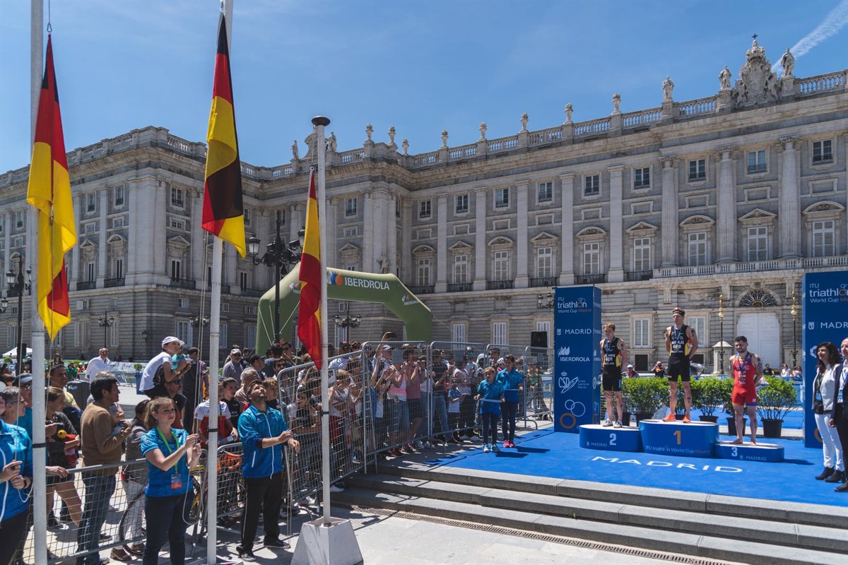 Podio masculino de la prueba de la Copa del Mundo de Triatlón de Madrid de 2019 - Arturo Baldasano / DPPI / AFP7 / Europapress