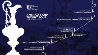 Entre el 25 de junio y el 1 de julio, el trofeo más antiguo del deporte internacional recalará en L'Escala (26 junio), Palamós (27 junio), Vilassar de Mar (28 junio), Sitges (29 junio), Tarragona (30 junio) y Cambrils (1 julio) antes de su llegada oficial a Barcelona, donde se exhibirá con las copas de la Puig Women's America's Cup, la UniCredit Youth America's Cup y la Louis Vuitton Cup.