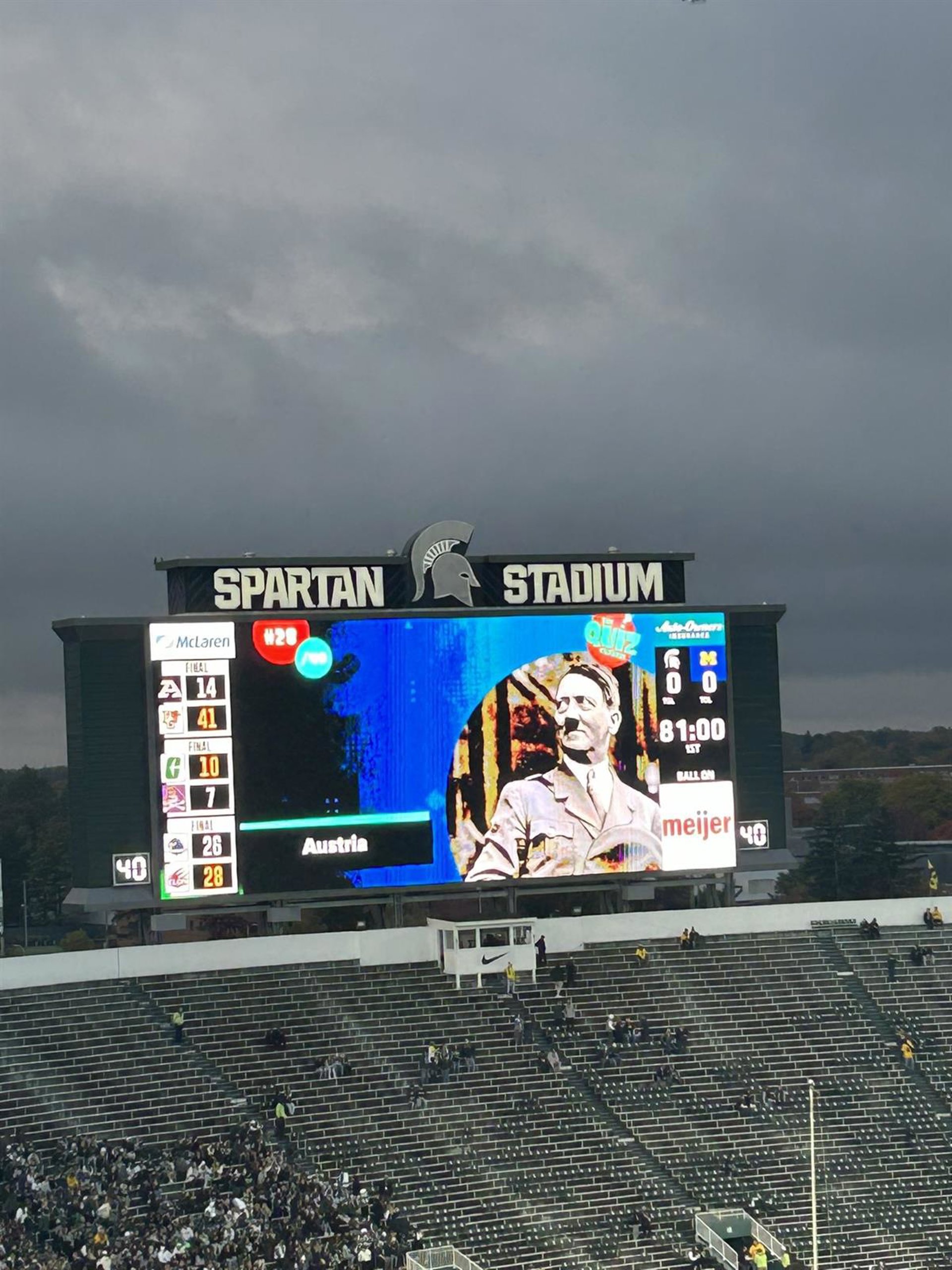Foto de Adolf Hitler en el videomarcador de la Universidad Estatal de Michigan - CUENTA DE X DE ALEXANDER HAENKE