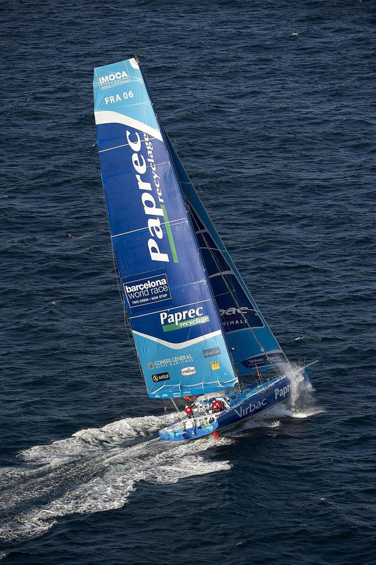 1. 'VIRBAC-PAPREC 3' (FRA) (Jean Pierre Dick - Loïck Peyron) a 22.560 millas de la llegada.