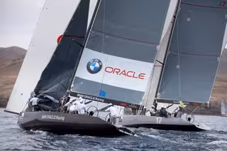 El segundo y tercer puesto se lo comenzaron jugando el BMW-Oracle de Russell Coutts y el Katusha de Paul Cayard. El barco americano volvió a imponerse y comenzar la serie por delante, el duelo entre estos dos históricos de la Copa América, era para el mítico neozelandés.