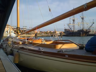El mítico velero 'Hispania' se encuentra ya atracado en Puerto Sherry, puerto deportivo de la Bahía de Cádiz, después de que adelantara su llegada.