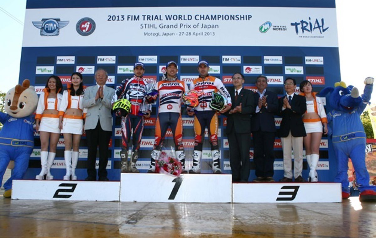 El piloto español Toni Bou (Repsol Montesa Honda) se mantiene como líder en la clasificación general al terminar tercero el Gran Premio de Japón de Trial, disputado en Motegi, por detrás de su compañero el nipón Tahakisma Fujinami, primero, y del también español Jeroni Fajardi (Beta).