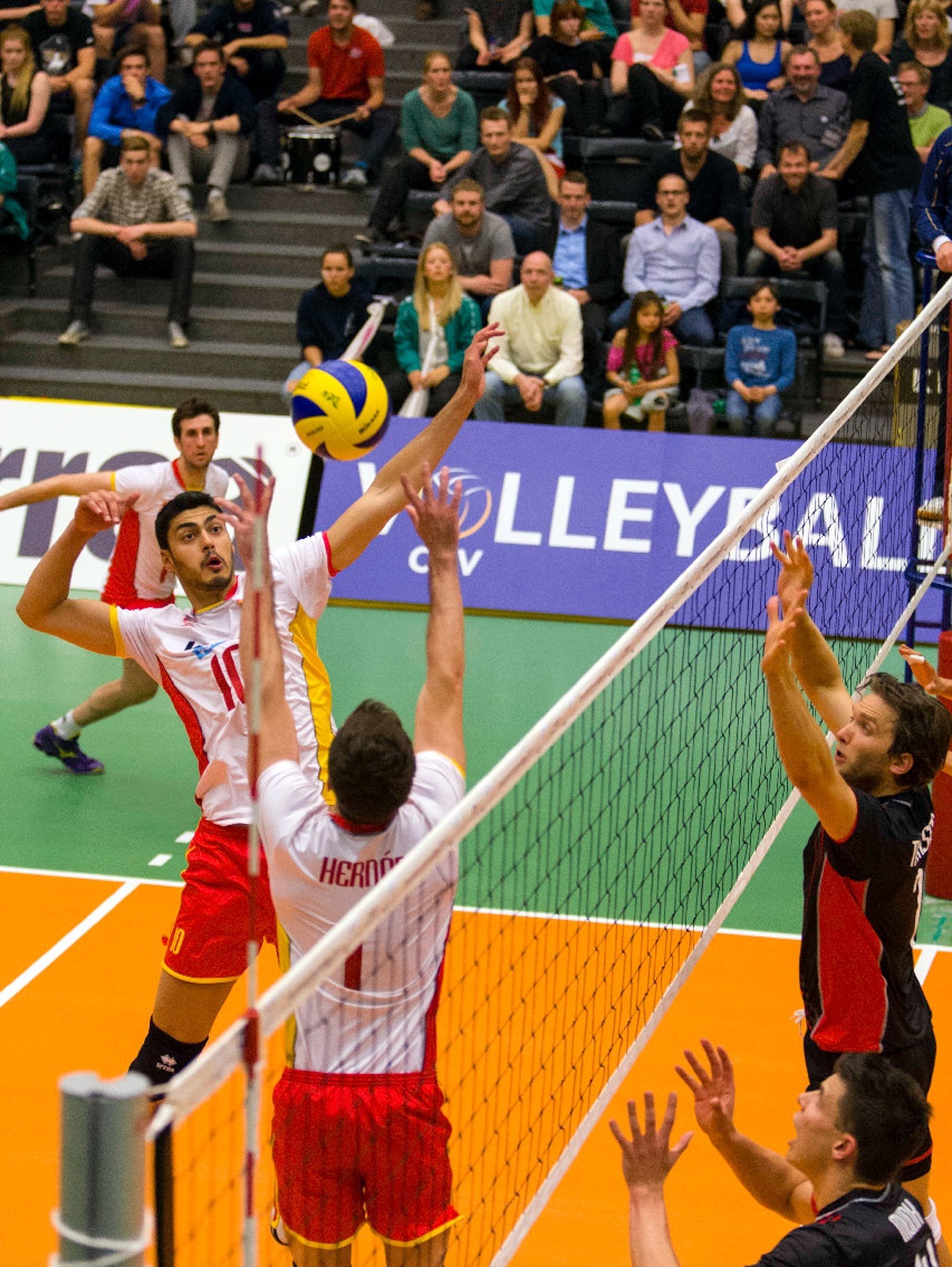 España dominó con claridad el primer set aunque lo que caracterizó esta manga fue el intercambió de puntos constante entre ambos equipos. El seleccionador nacional Fernando Muñoz salió con variaciones en el sexteto inicial, al alinear a Víctor Viciana de salida, con Rocamora como opuesto titular (25-16).