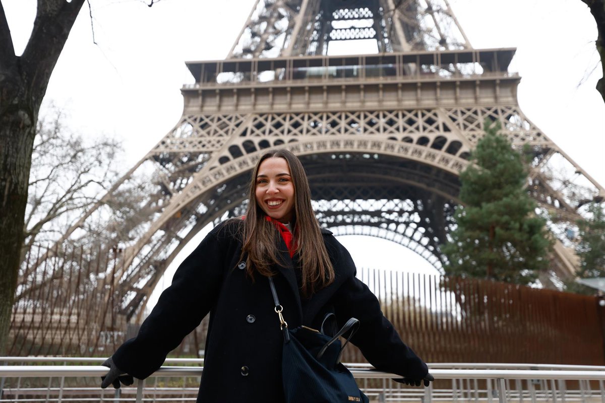La palista española Antía Jácome posa delante de la Torre Eiffel durante la visita del equipo de Iberia 'Talento a bordo' a menos de 200 días para los Juegos Olímpicos de París 2024. - OSCAR J. BARROSO/AFP7/EUROPA PRESS