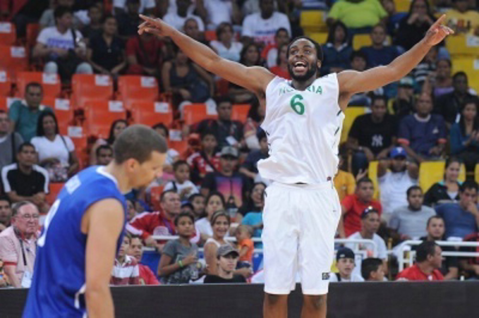 Jack Michael Martínez lideró la resistencia dominicana en el segundo cuarto dominando la zona con 15 puntos y siete rebotes al descanso. Sin embargo, en ese momento apareció Diogu para volver a ampliar las diferencias al borde del descanso después de que la República Dominicana rebajase la diferencia hasta los dos puntos. Al final del segundo cuarto, el marcador reflejaba un cómodo 49-37 para Nigeria.
