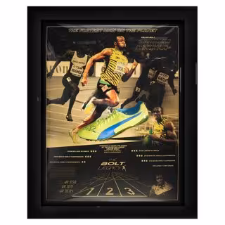 La bota fue utilizada por el jamaicano en el Mundial de 2015 en Pekín para la carrera de los 100 metros lisos donde consiguió la mejor marca del año (9.79). El artículo cuenta con un certificado de autenticidad en el reverso del cuadro y se espera que alcance los 8.500 euros en la subasta.