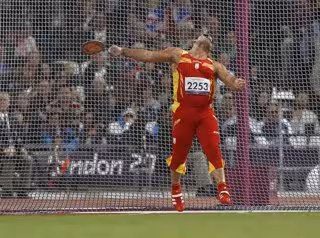 En esta ocasión, acudía al Estadio Olímpico de Stratford como uno de los serios aspirantes, ya que tenía la mejor marca del año, un tiro de 37,54 metros, pero la calidad de sus rivales, sobre todo el ucraniano Vasyl Lishchinskiy o el austriaco Bil Marinkovic, amenazaban con complicar las cosas, pero el valenciano sacó a relucir su mejor repertorio para llevarse el premio gordo.