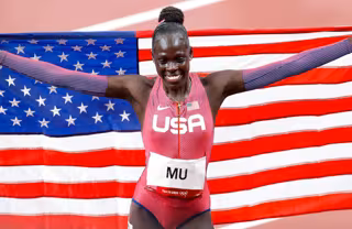 Con un crono de 1:55.21, Mu, de 19 años, batió estableció la nueva plusmarca estadounidense para emular a su compatriota Madeline Manning (2:00.9), la única atleta del país norteamericano que había conseguido reinar antes en la prueba, en México 1968.