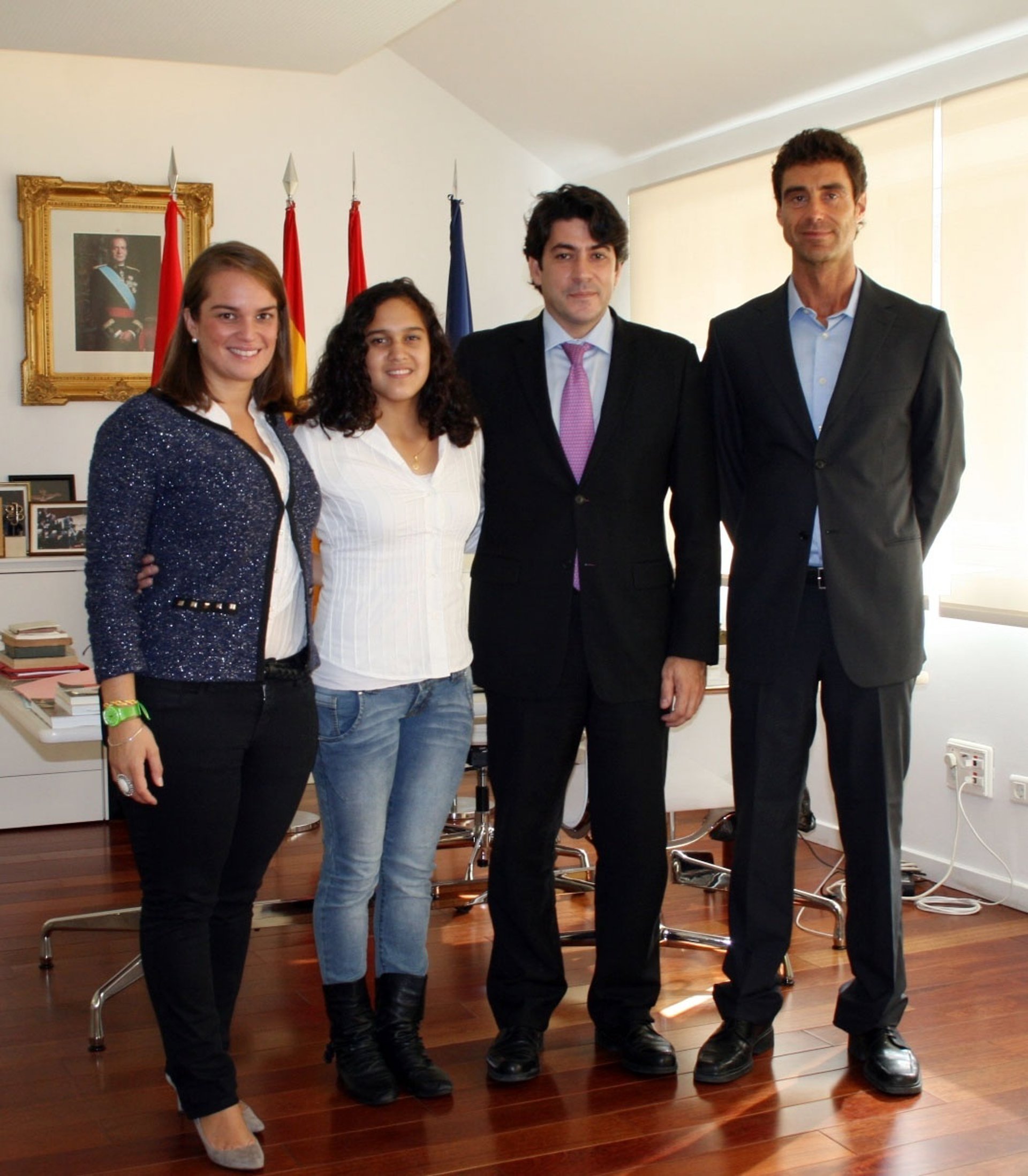 David Pérez, acompañado por la concejal de Deportes y Juventud, Loreto Sordo, felicitó en nombre de todos los ciudadanos de Alcorcón a Miki Oca y Ana María Izurieta, quienes tras compartir con el alcalde y la edil sus inquietudes sobre waterpolo y gimnasia artística firmaron en el Libro de Honor de la ciudad.