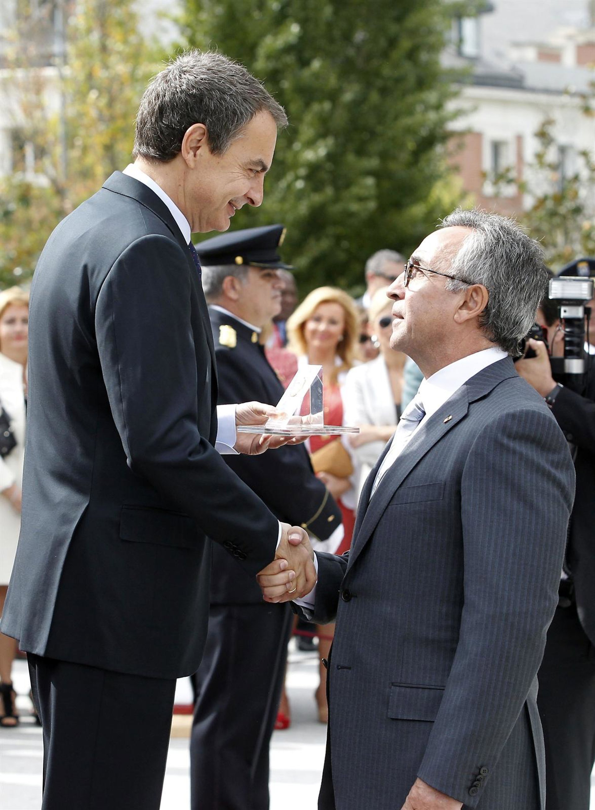 El presidente del Gobierno, José Luis Rodríguez Zapatero, hizo entrega de la distinción otorgada por el Departamento de Seguridad de la Presidencia del Gobierno, al presidente del Comité Olímpico Español (COE), Alejandro Blanco.