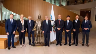 De izda a dcha: David Lappartient, Kirsty Coventry, Juan Antonio Samaranch, Thomas Bach, el Príncipe Feisal Al Hussein, John Eliasch, Mori Watanabe y Sebastian Coe - COI/GREG MARTIN