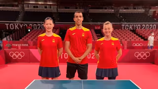 María Xiao, Galia Dvorak y Álvaro Robles, representantes españoles de tenis de mesa en los Juegos de Tokyo 2020. - RFETM