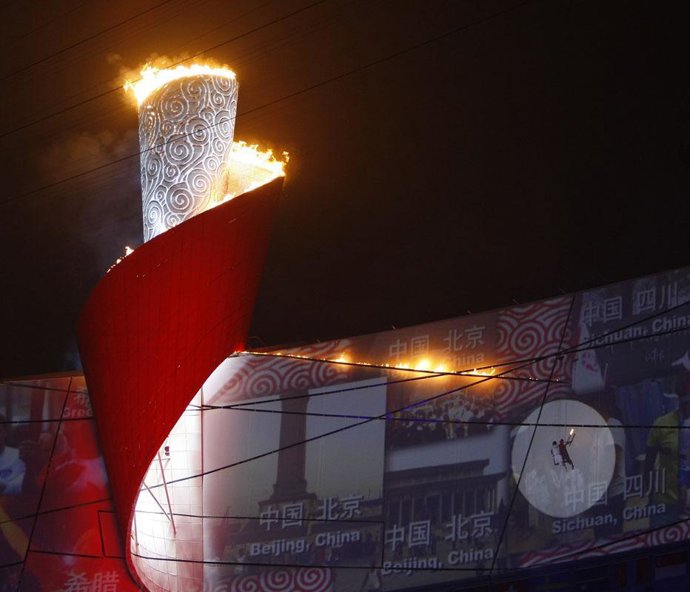 Entre las secciones grabadas con anterioridad estuvo la impresionante pirotecnia desplegada en toda la ciudad, una serie de 'huellas' de fuegos artificiales que conducía hasta el estadio olímpico, más conocido como el 'Nido', donde se realizó el grandioso espectáculo que duró cuatro horas.
